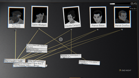 Интерфейс расследования в игре Night Call, 2019.