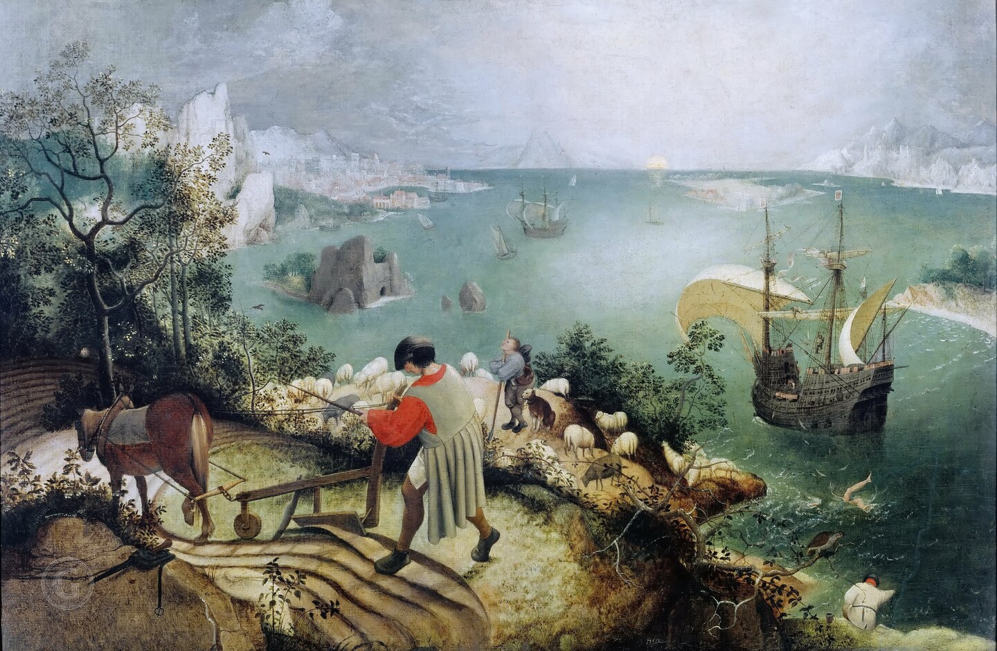 «Брейгель любил несколько утрированно изображать характерные, коренастые фигуры фламандских крестьян, за что и был прозван „Мужицким“. Он — философ в живописи, скептический, ироничный, часто трагичный. Своими странными композициями, всегда имеющими философский подтекст, Брейгель как бы восстановил прямую связь с традицией средневекового мистицизма, так ярко проявившейся в творчестве