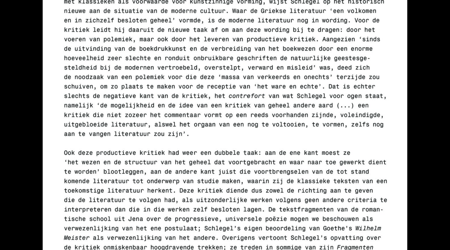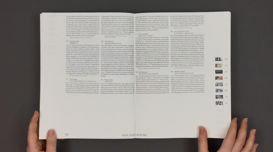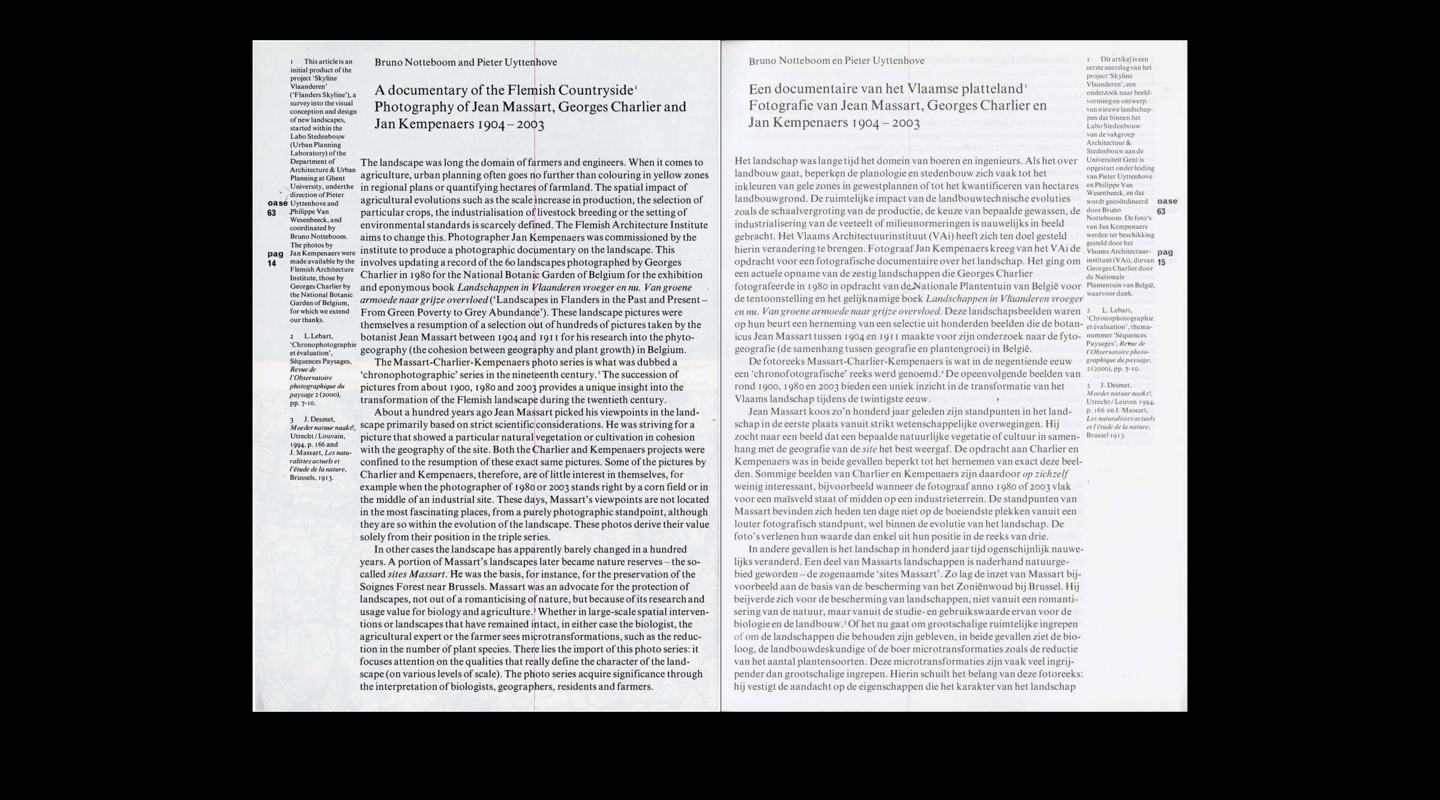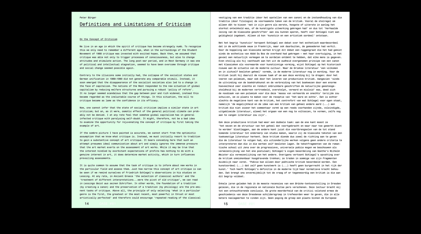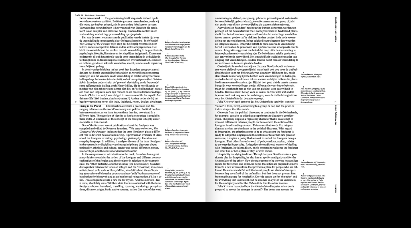Макет этого номера журнала «OASE» (дизайнер — Карел Мартенс) цитирует механистичный, утилитарный стиль. Отсюда — полное отсутствие декоративности, скудный набор выразительных средств, моноширинный шрифт и минимальное количество его размеров и начертаний.