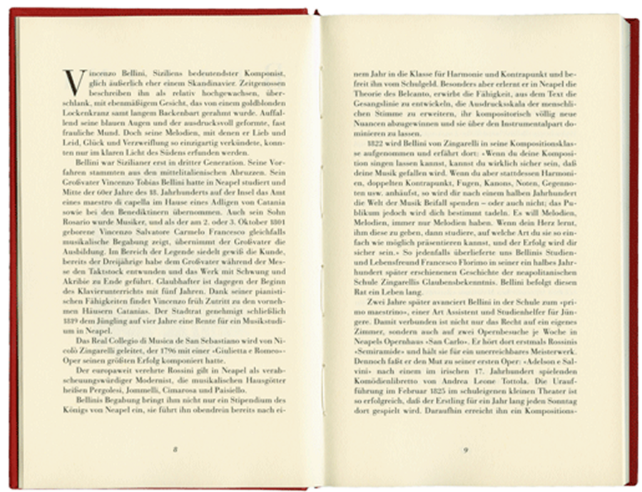 Более узкие, заострённые поля, выраженная вертикаль в композиции, симметрия, выключка по формату, использование буквицы в начале текста, а также контрастная антиква нового стиля, которая используется в наборе, некоторая декоративность в типографике (линейки, сильная разрядка) говорят о том, что макет цитирует собой стиль эпохи классицизма (конец XVIII — начало XIX века).