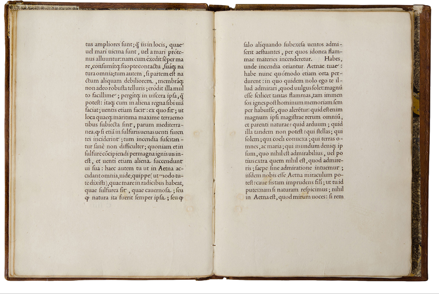 «Об Этне» («De Aetna»), Альд Мануций, Франческо Гриффо, 1496. Первая книга Альда, напечатанная на латыни.
