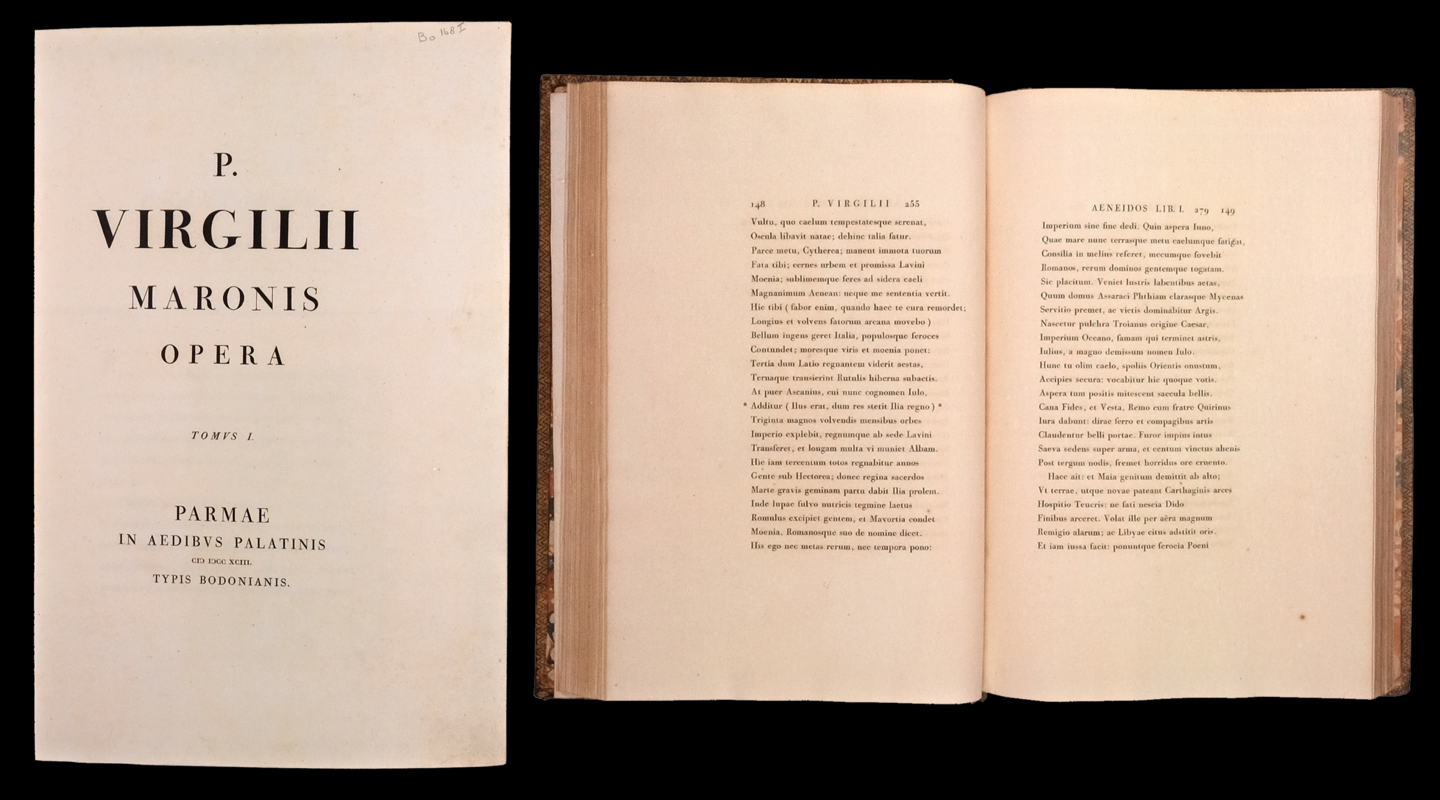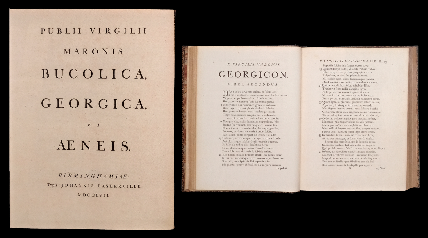 1. Публий Вергилий Марон «Буколика, Георгика и Энеида». Джон Баскервиль (John Baskerville), 1757. 2. Собрание сочинений Публия Вергилия Марониса, том I. Джамбаттиста Бодони (Giambattista Bodoni), 1793