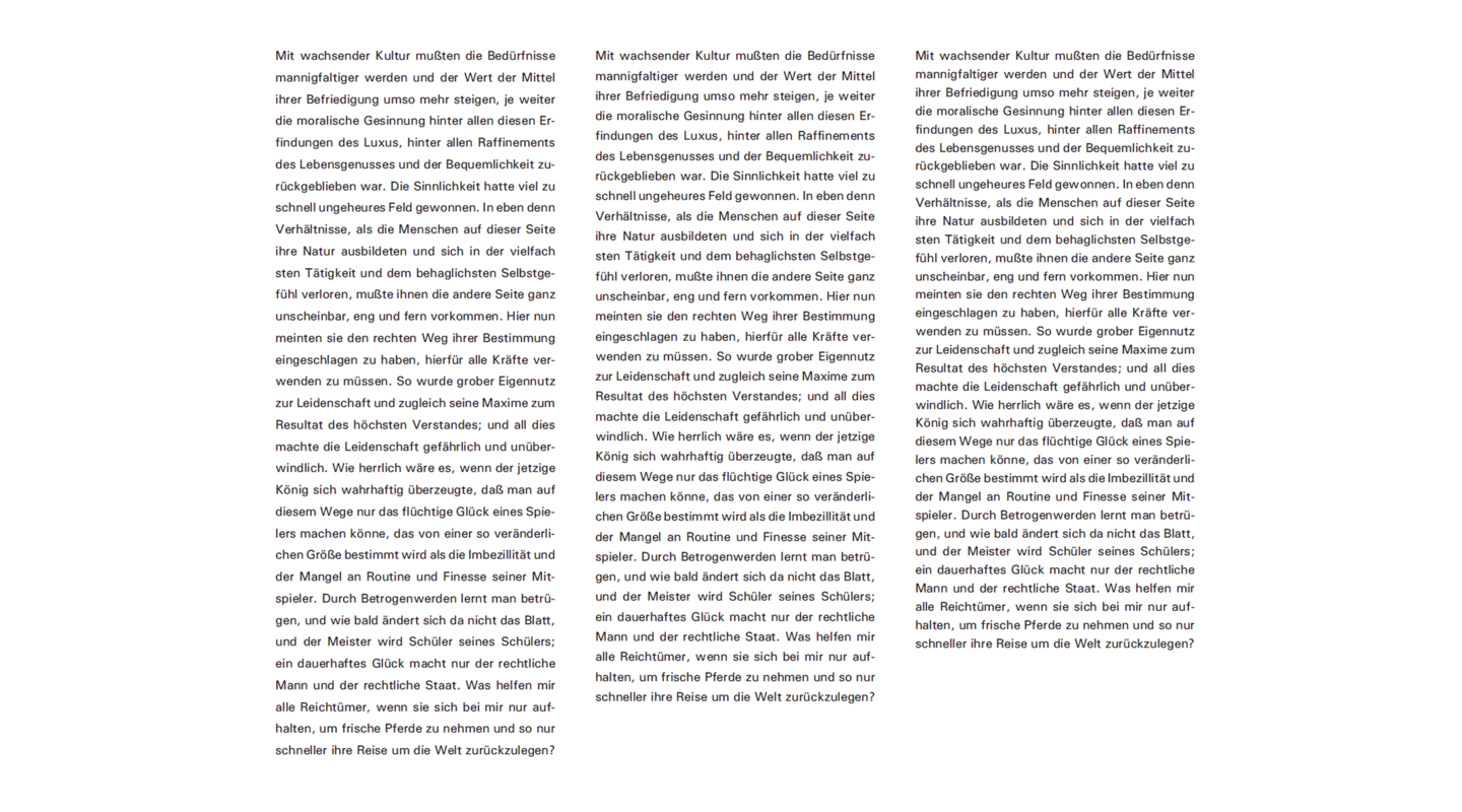 Пример градации интерлиньяжа от сильно разряженного до плотного. Эмиль Рудер, «Типографика».