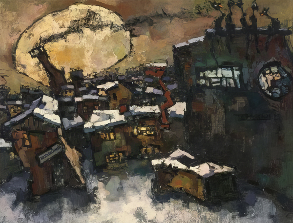 Оскар Рабин | ЛУНА И ПЯТЬ КОТОВ | 1962
