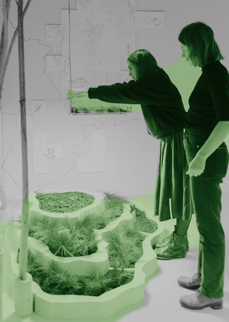 Участницы художественной группировки BIOROBOTY 019 взяли растения с поляны в Гатчине, на которой растут краснокнижные редкости. Саженцы при участии ученых выкопали, а затем прорастили дома во время пандемии. В лучших традициях постгуманизма (в его поверхностном прочтении) художницы сделали растения резидентами художественной инсталляции.