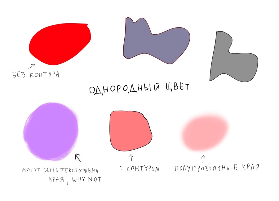 Нужно нарисовать простые формы разными комбинациями линий и пятен, сохраняя целостность силуэта.