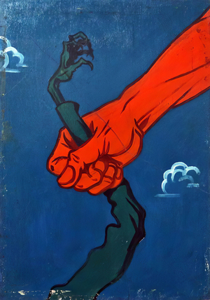 Оскар Рабин | ЦЫПЛЕНОК, ЗАВЕРНУТЫЙ В «СОВЕТСКУЮ РОССИЮ» | 1968Оскар Рабин | «УРА!» | 1965
