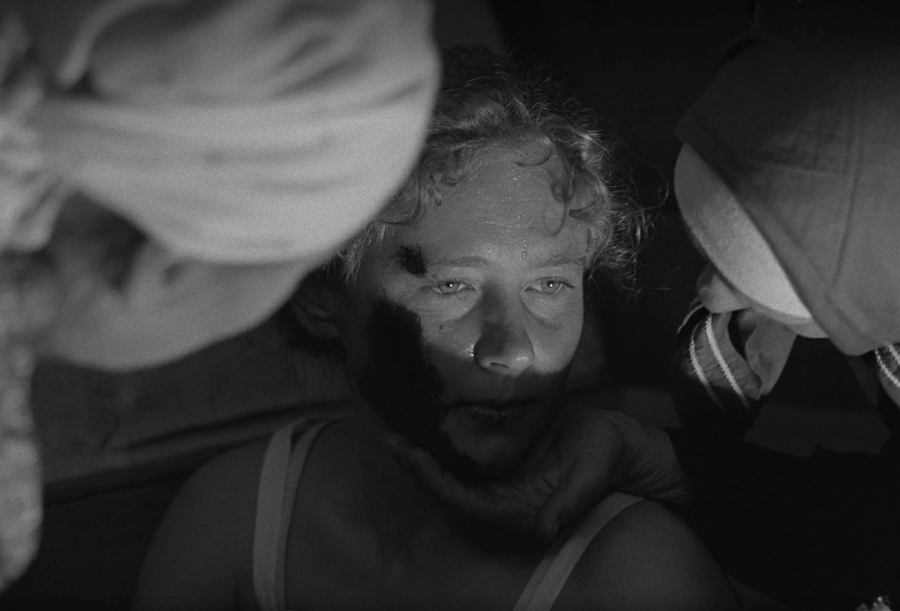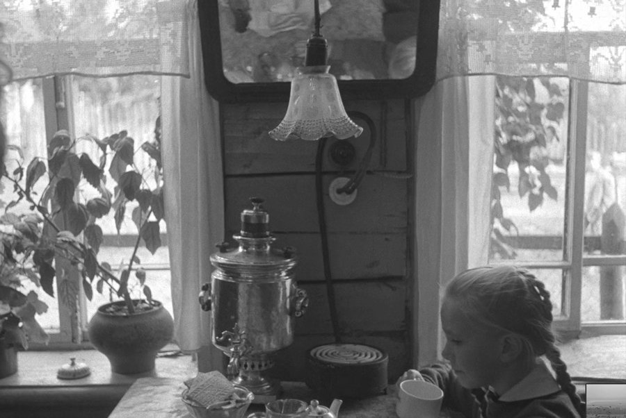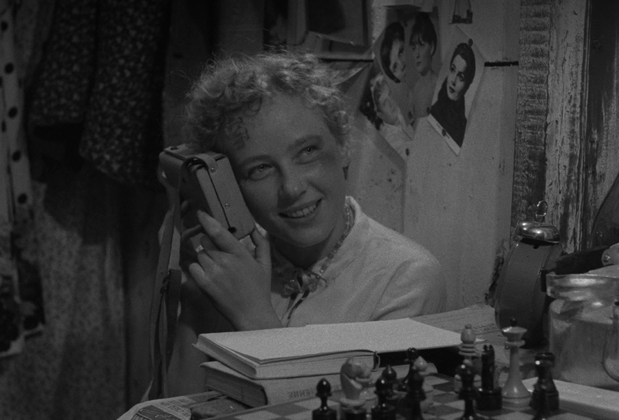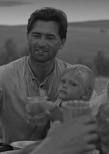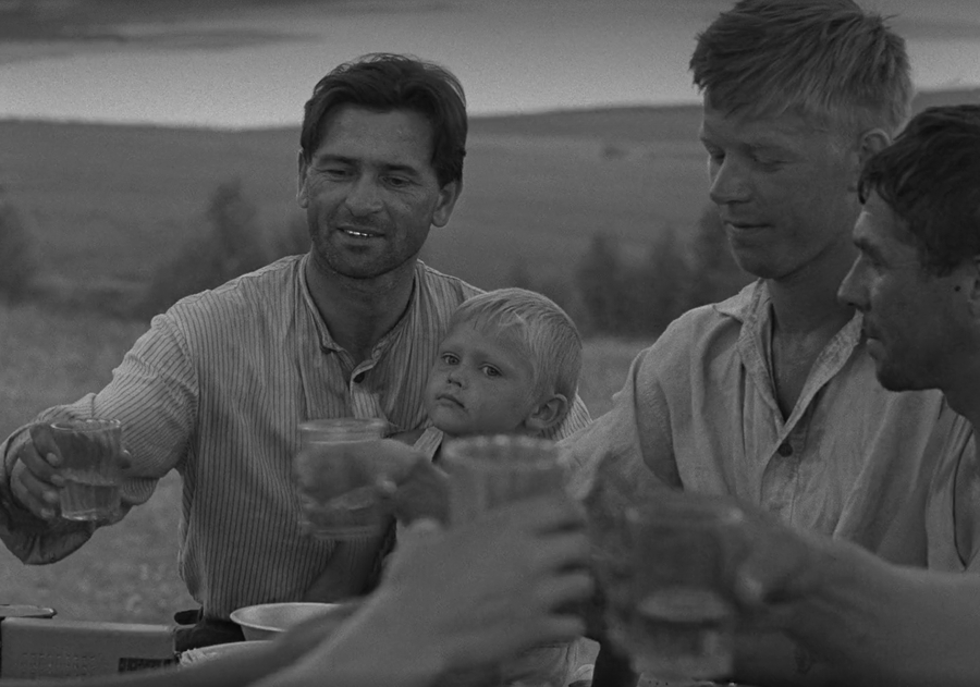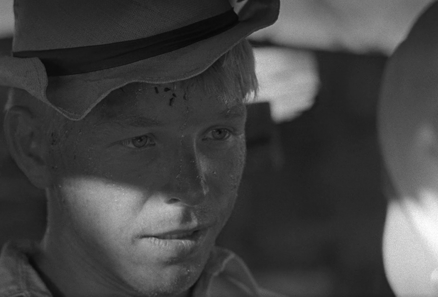 Правильно выстроенный свет показывает нам сам материал из которого собрано внутрикадровое изображение. Если контрастный свет выявляет фактуру в случае с объектами, то в случае с людьми он выявляет их душу. Подсвеченное по диагонали лицо обладает собственным эмоциональным рельефом. Каждое небольшое движение уголков рта или глаз становится событием. Так свет в оттепельном кино открывает нам путь внутрь жителей деревни, куда раньше отечественный кинематограф не заходил.