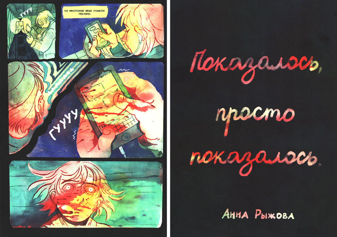 Развороты из комикса «Показалось». Рыжова А. (2023)