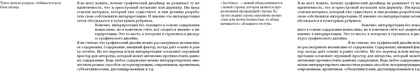 Примеры распространенных абзацев и разделов, фрагмент из печатного издания визуального исследования. Примеры набраны самостоятельно.