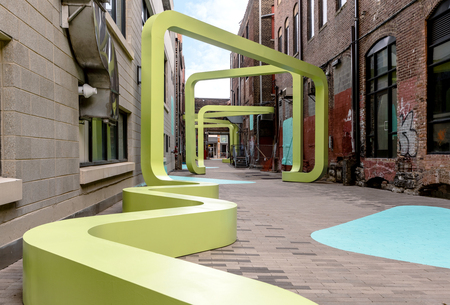 Начать стоит со смелого проекта «City Thread» или «Городская тема», развернувшегося на заброшенной аллее типа «смешанное использование низкой плотности» в городе Чаттануга, США. Проект выступает в роли социального центра, где жители города разных слоев могут собираться все вместе как для массовых мероприятий, так и для личных встреч, общения узким кругом. Главная деталь проекта — стальная лента салатового цвета, длиной свыше 150 метров, зигзагом протянувшаяся вдоль всего переулка. Благодаря динамике и хаотичности изгибов ленты территория делится на множество небольших, более камерных «комнат» с разным наполнением. Дополняет пространство большое количество граффити и рисунков на стенах зданий, а также цветная подсветка.