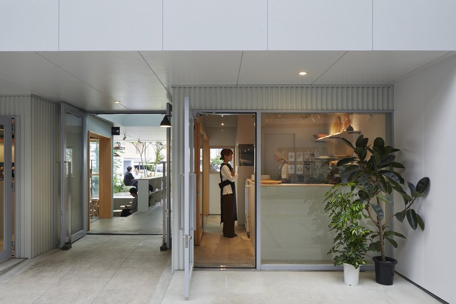 Еще один японский проект «третьего места», похожий на парк Омокен — кофейня «Терраса Такениси» (Takenishi Terrace), построенная на месте снесенного здания в 2021 году. Кофейня имеет два уровня и сквозную планировку, тем самым привлекая посетителей как со стороны улицы, так и со стороны торгового ряда, на который выходит своим фронтальным фасадом (в данном случае, категория переулка — «коммерческий район»). Светлые интерьеры, дружелюбный персонал и ненавязчивое озеленение быстро полюбились горожанам, поток которых сильно увеличился уже в первые месяцы после открытия.
