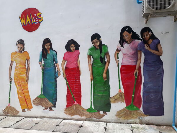 «6 бирмандок с метлой», переулок-сад на 35-й улице, Янгон, Мьянма авторы проекта: Дельфина де Лорм из YGNWALLS (Yangon Walls) 2018