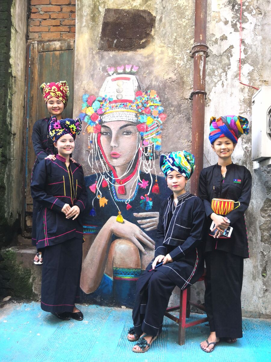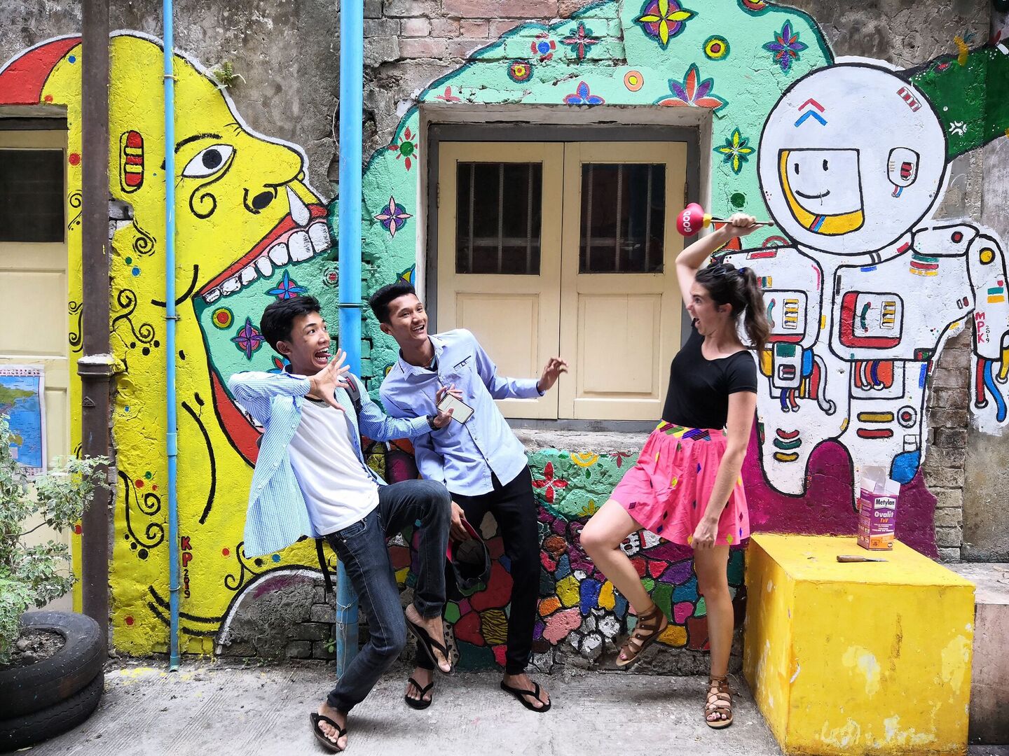 Художники YGNWALLS расписывают стены переулка на 35-й улице, Янгон, Мьянма авторы проекта: проект Аллейный сад, YGNWALLS (Yangon Walls) 2018-2020