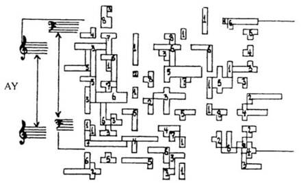 Джон Кейдж использовал этот тип в своих зарисовках для сценариев концертов, а Мерс Каннингем применял аналогичный подход в контексте современного танца. Такие схемы представляют собой стандартизированные визуальные элементы, обеспечивающие последовательность и повторяемость действий.