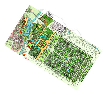 Восстановление велось по историческим архивным картам, фиксируя сохранившиеся элементы и максимальную точность планировочного решения времен Петра I. Археологические работы выявили соответствие рельефа историческим документам, что позволило восстановить прежние контуры дорожек, водных объектов и зеленых зон.