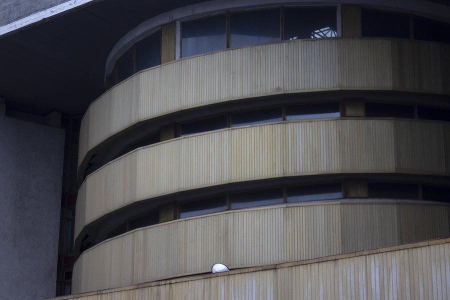 Здание, занимающее целый квартал, хранит память о партийной элите. Три проработанных фасада объединены сдержанной цветовой гаммой и горизонтальными линиями. Эта тектоническая скромность выдаёт позднесоветский компромисс: архитекторы больше не создавали монументальные символы, но пытались сделать красивым каждый объект, даже гараж. {3}