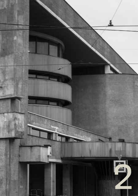 Рассмотрим подробнее здание через имплицитный символизм. Автобаза не сообщает напрямую о своей функции. Вместо этого она работает через визуальную молчаливость: здание отказывается быть понятным. Эта сознательная закрытость становится знаком. {3}