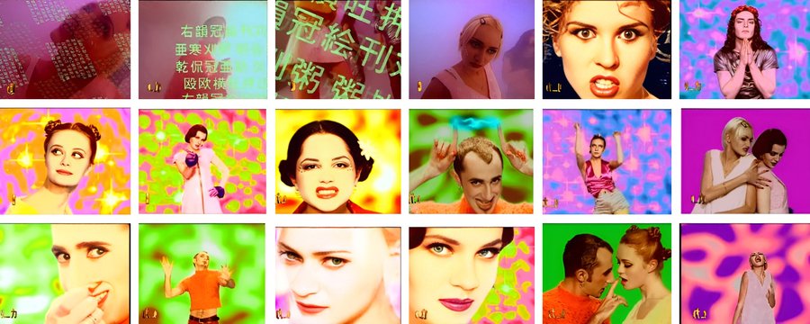 В музыкальных клипах 90-х годов активно использовалась графика, которая стала важной частью визуального языка эпохи. Яркие цветовые сочетания, вспышки и засветы создавали динамику. Значение имела также цветокоррекция, добавлявшая причудливый оттенок коже. Графика, добавленная поверх изображения или являвшаяся отдельным кадром в клипе, представляла собой абстрактные линии, неоновые лучи и схемы, странные фигуры и вымышленные анимации.