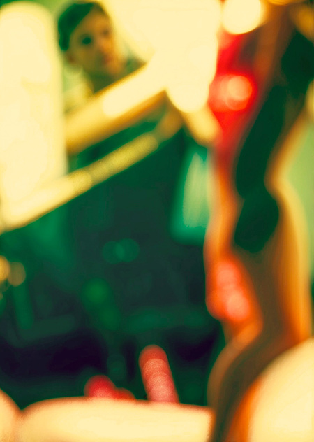 Такие приёмы, как вырезание фона и добавление яркого, неуместного задника, характерны также для фотографий того времени. Например, в журнале «Птюч» можно увидеть модели Насти Михайловской в причудливых позах на фоне укропа, красного перца и астр.