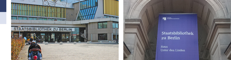 Слева направо, сверху вниз: (1, 2) Навигация и брошюра Берлинской государственной библиотеки; (3, 4) Навигация Публичной библиотеки Митте; (5) Навигация Берлинской центральной земельной библиотеки