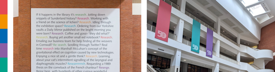 Наиболее оформленная с точки зрения айдентики библиотека — Библиотека Лондона, над фирменным стилем которой работала студия Bruce Mau Design. В остальных библиотеках выборки фирменное единство соблюдается в основном через цвет, использующийся в навигации и коммуникационных материалах.