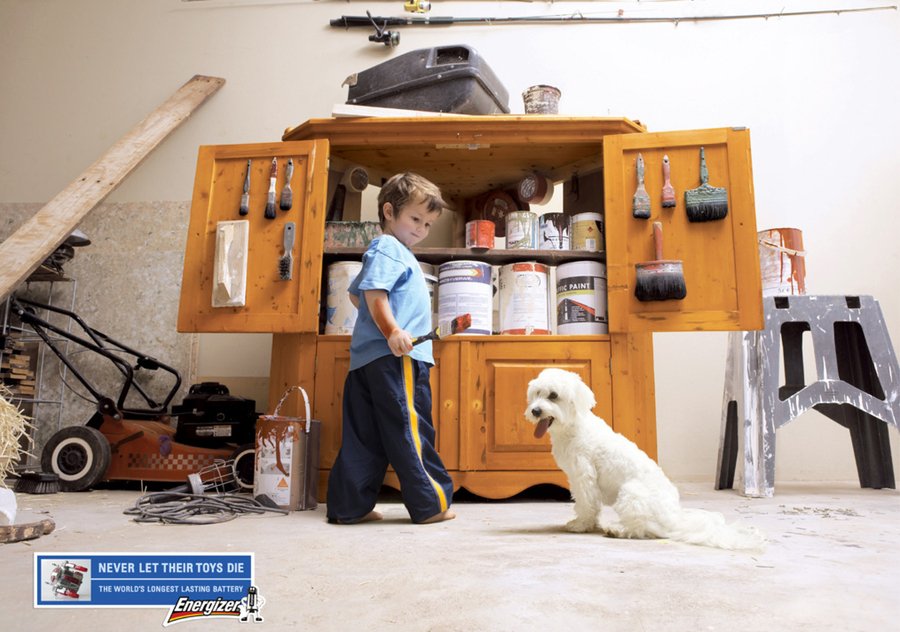 Здесь противоречие заключается в визуальной коммуникации бренда батареек: мы видим балующихся от скуки детей, у которых разрядились игрушки. Порой надо принимать тот факт, что «цветы жизни» плюются на прохожих с балкона, а реклама это только поддерживает, не показывая родителям просто счастливых детей с работающими игрушками.