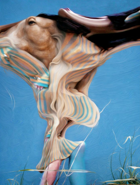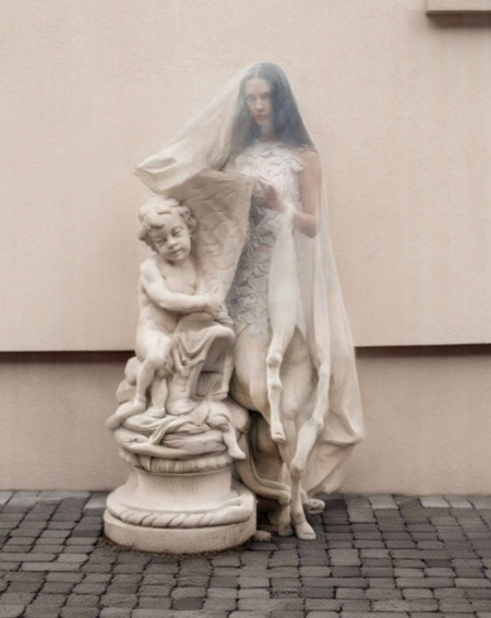 Один из самых интересных и набирающих популярность способов использований нейросетей — интеграция с реальной фотографией. Этот приём позволяет максимально расширить границы фотографического искусства и выйти за его рамки. С помощью искусственного интеллекта художники дорисовывают реальный мир и погружают его в метасюрреалистичный сюжет. Метод работы с нейросетями особенно популярен в фэшн среде, где искусственный интеллект может хорошо помочь в визуализации дизайнерской идеи. Помимо генеративной фотографии, активно популяризируется использование нейросетей для оживления картинки и создания видео, что тоже становится новейшим и актуальным приёмом замещения реальности.