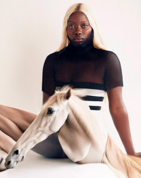 Как отдельный приём стоит отметить использование исключительно генеративных ресурсов для создания фэшн-фотографии. Чуть ли не с каждым месяцем нейросети становятся всё более реалистичными, поэтому их популярность среди фотографов, художников и других креаторов растёт с очень сильной скоростью. Порой модные бренды и журналы выбирают использование нейросети как инструмента для разработки кампейнов и эдиториалов, тем самым создавая контент, не снимая ничего в реальной жизни. В отличие от других методов диджитал искажения, например 3D, нейросеть более доступная и простая в использовании, быстрее выдаёт результат и имеет более широкий спектр возможностей.