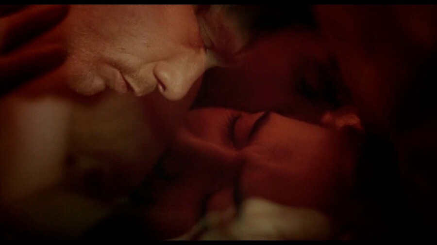 Сцена под одеялом представляет собой визуальную метафору стирания памяти. В первом кадре оранжевый свет мягко обволакивает Джоэла и Клементину, цвет насыщенный и тёплый, зритель ощущает близость и уют момента. Во втором кадре десатурация начинается с краёв, лица теряют объём, свет становится тусклым, воспоминание превращается в отголосок. В третьем кадре почти всё выцветает, остаются только силуэты в тени, память исчезает, оставляя за собой пустоту. Это не просто монтажный приём, а физически ощутимый процесс: зритель наблюдает, как личное переживание постепенно умирает и превращается в безжизненное пространство.