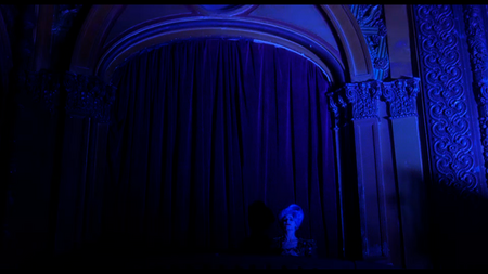 Эта сцена в Club Silencio построена на контрасте двух цветов, которые работают как смена уровней восприятия. Сначала зал заливает холодный синий свет, он неподвижен и отчуждён, подчёркивает иллюзию пустоты. В этот момент зритель верит в объективную реальность происходящего.