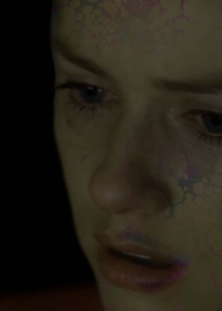Финальная стадия стирания памяти показывает, как лицо Клементины постепенно растворяется в цифровом шуме. Это не размытие фокуса, а визуализация нейронной амнезии в реальном времени. Гондри достигает предела метафоры памяти: черты исчезают, узнаваемость пропадает, и перед зрителем остаётся пустой силуэт. Края кадра также затемнены.