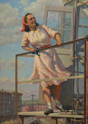 В эпоху хрущевской оттепели великая стройка, охватившая города СССР, стала важным символом масштабных перемен, обещанных государством. Москва, обрастая строительными лесами, обновлялась новыми проспектами и модернистскими зданиями, наполняясь гулом инструментов и шумом рабочих, вставала на путь «столицы светлого будущего».