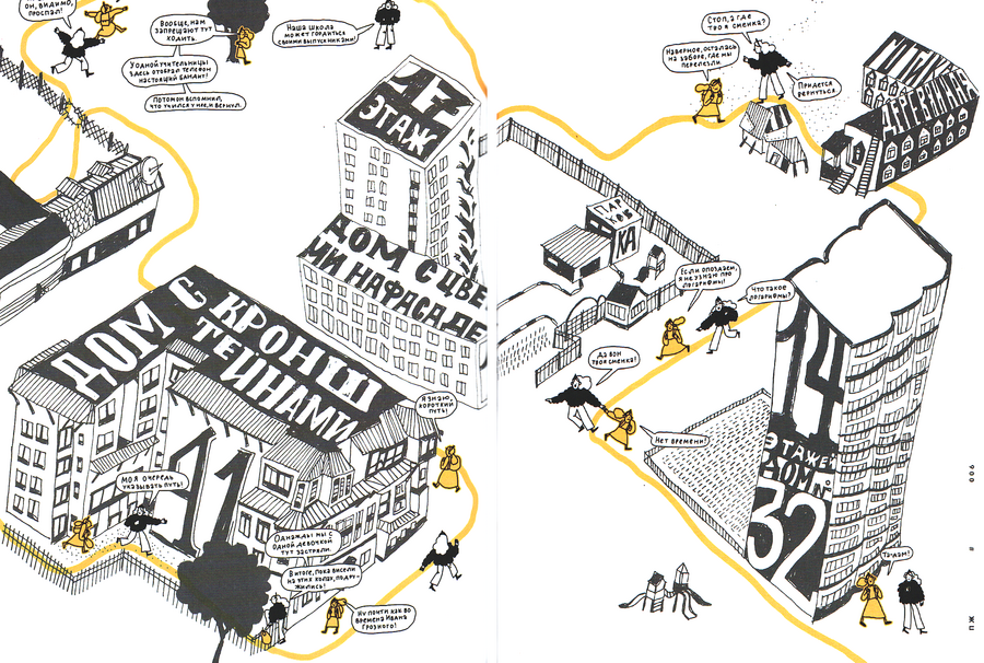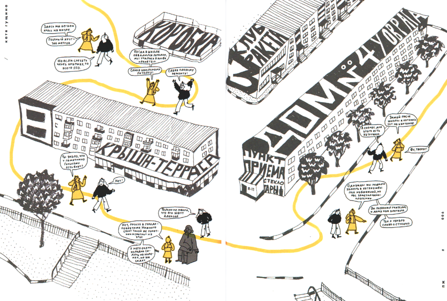 Нижний Новгород. Развороты из комикса «Прогулка». Гущина К. (2023)