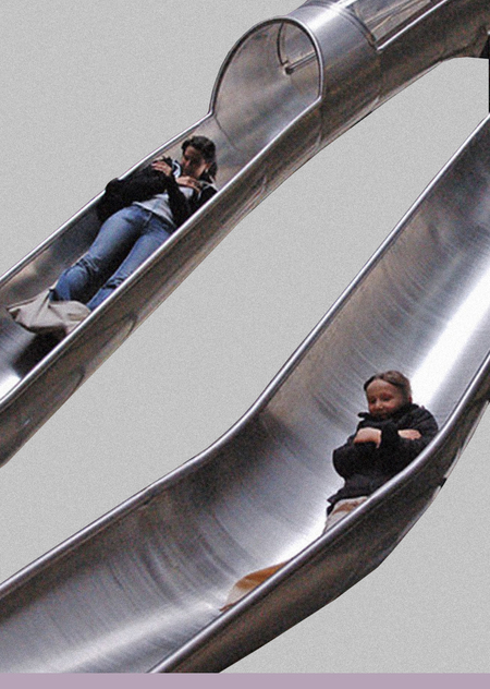 Карстен Хёллер в работе «Испытательный полигон» (2006) исследует не только визуальное воздействие, но и глубоко эмоциональный опыт самого процесса скольжения. Он подчеркивает уникальное сочетание страха и удовольствия, которое испытывает человек, спускающийся с горки, называя это «внутренним зрелищем». Выбор горки в качестве художественной среды неслучаен: этот аттракцион, обычно связанный с детством или экстренными ситуациями, становится в работах Хёллера инструментом исследования человеческих эмоций. Этот проект позволяет зрителю испытать на себе большой диапазон ощущений и расширить границы восприятия.
