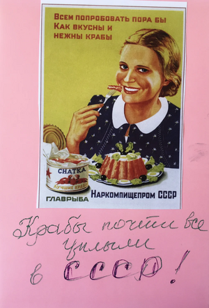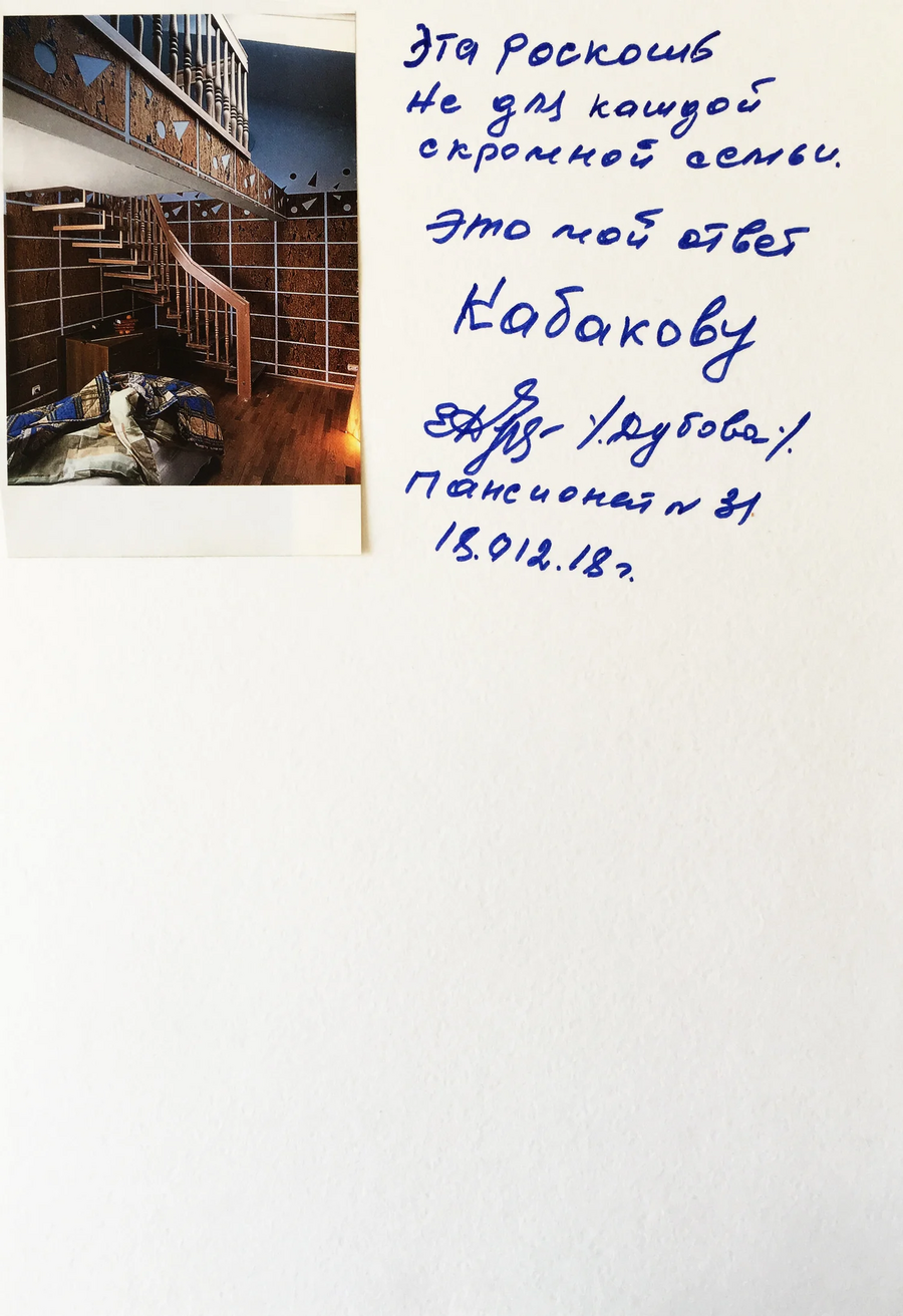 После посещения выставки Ильи Кабакова жители дома в Конаково переняли эстафету, «отвечая» концептуалисту через коллажи, дополненные авторскими подписями.