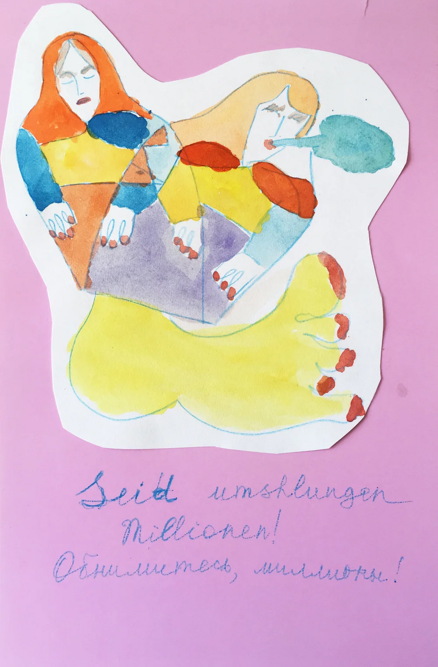 Было необходимо найти те вещи, которые заинтересовали бы всех участников процесса, были бы близки и понятны для них. Итогом стала серия нарисованных ковров, а также фотографии авторов на их фоне как отсылка к многолетней портретной традиции, знакомой, пожалуй, каждому человеку на постсоветском пространстве.