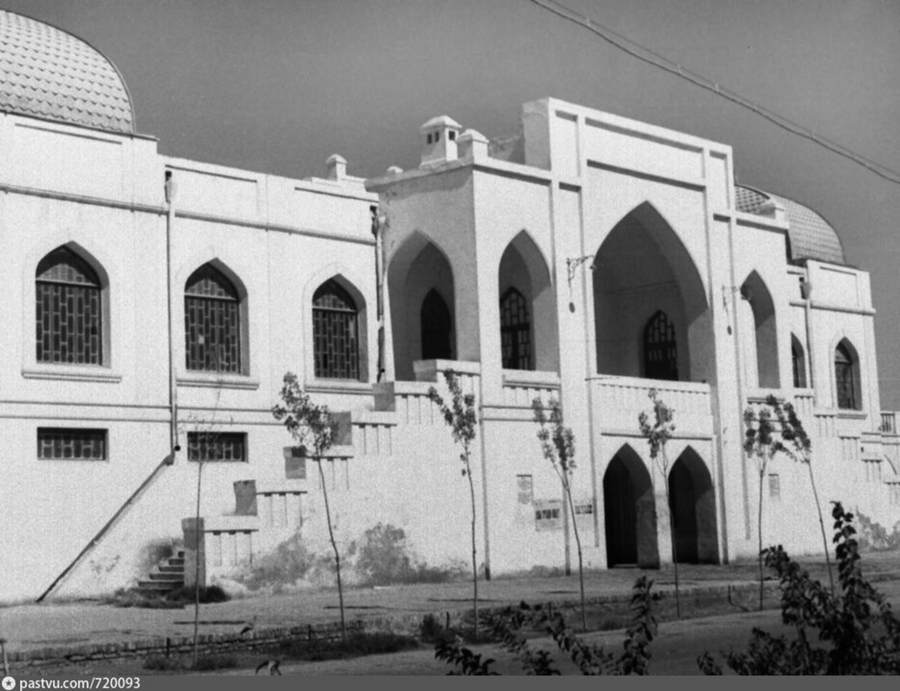 Сроки строительства здания неизвестны, окончено строительство было в 1923 году. Здание построено из кирпича европейского типа, но возможно, что для фундамента в качестве бута использовались кирпичи от разбираемых неподалеку зданий, напр., мавзолея Шодим-бия.