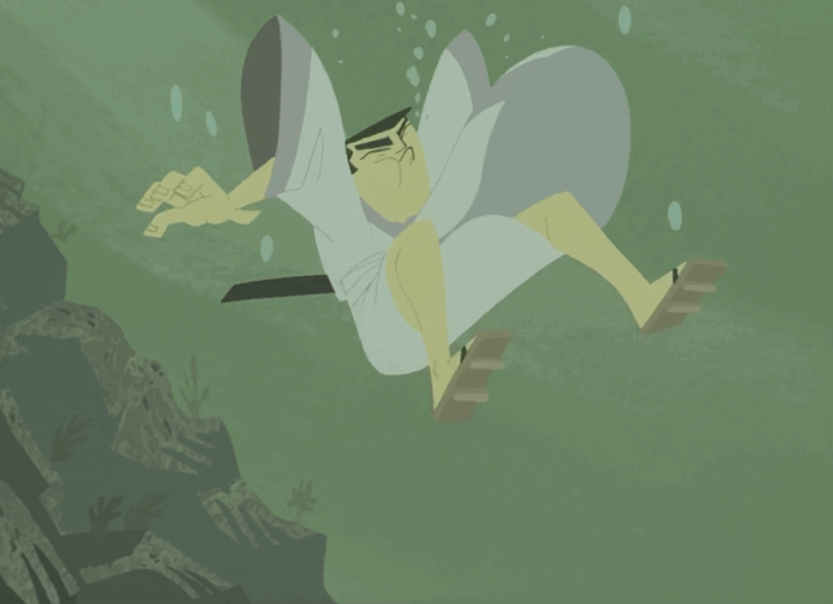 В мультсериале «Самурай Джек» для того, чтобы попасть на другой остров, нужно было пересечь водоем на древнем животном с длинными ногами. Его рост помогает ему не быть утянутым на дно водоема, в котором чуть не утонул главный герой под силой притяжения. Это древнее создание можно было призвать благодаря ритмичным ударам по воде.