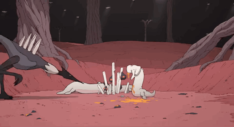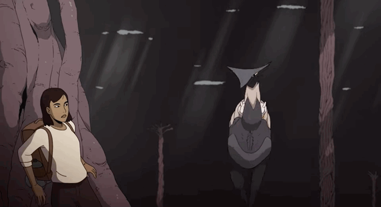 В сериале «Царство Падальщиков» представлено множество действительно уникальных систем организмов. Они работают по своим инопланетным законам. Например, чтобы попасть на следующий уровень земли, героине нужно было забраться на птицу, которая имеет способность перемещаться внутри причудливого дерева, ведущего наверх. Но чтобы забраться на птицу нужно было испачкаться соком растения, привлекающее животное. Все продумано и связано.