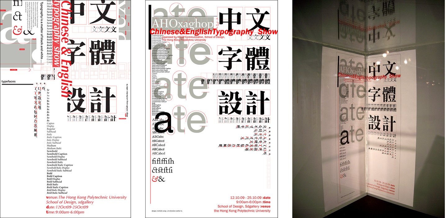 Афиша выставки типографики «Китайский и английский», Многоязычная типографика и школа дизайна, Политехнический университет Конга, Янь Чжао, 2009.