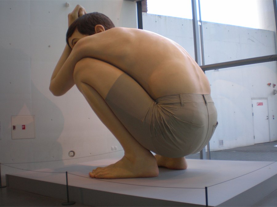 Рон Мьюек в своих работах размышляет о человеческой уязвимости, изоляции. Его гиперреалистичные скульптуры исследуют интимные моменты существования, часто акцентируя внимание на переходных состояниях — от рождения до смерти.