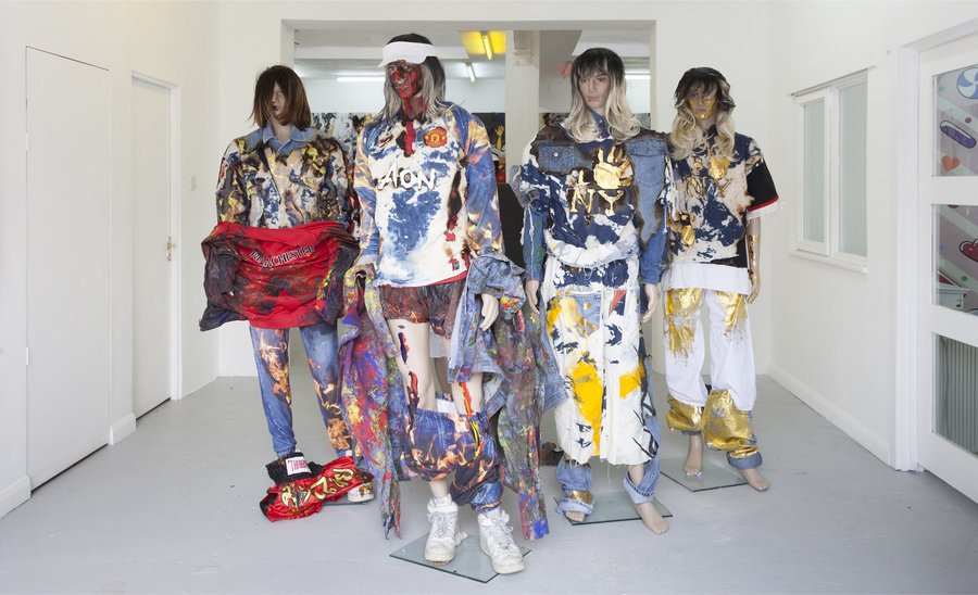 В его инсталляциях деним часто обжигается, окрашивается или деконструируется, что превращает ткань в метафору изменения и разрыва. Одежда и деним выступают как носители личных историй, напоминающие о движении и циклах времени, а также как медиаторы между традиционным и современным, Востоком и Западом. Они становятся неотъемлемой частью его визуального языка, помогая исследовать границы искусства, моды и ритуала.