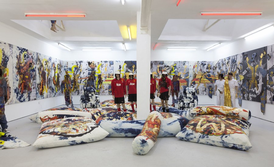 Korakrit Arunanondchai. 2557 (Painting with history in a room filled with men with funny names 2). , Installation view. 2014.
