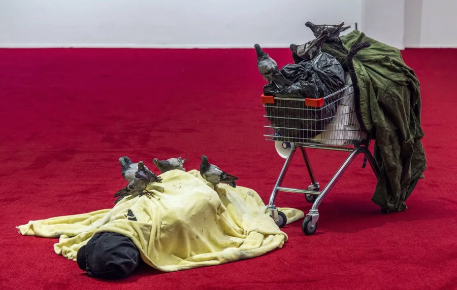 Маурицио Каттелан размышляет о власти, абсурде и человеческой уязвимости, используя иронию и провокацию для критики социальных и культурных норм. Одежда в его работах часто играет роль символа статуса, идентичности или социального коммента. Она становится ключевым элементом, подчеркивающим контекст персонажа или ситуацию. Она усиливает иронию, превращая фигуры в карикатуры или гиперреалистичные символы. Каттелан использует одежду, чтобы сделать зрителя соучастником его острой сатиры на общественные институты, традиции и концепции авторитета.