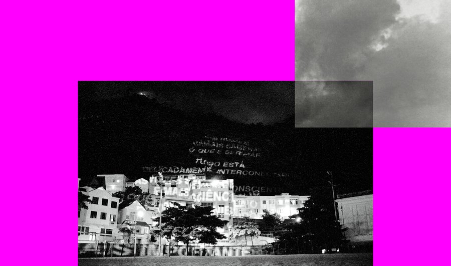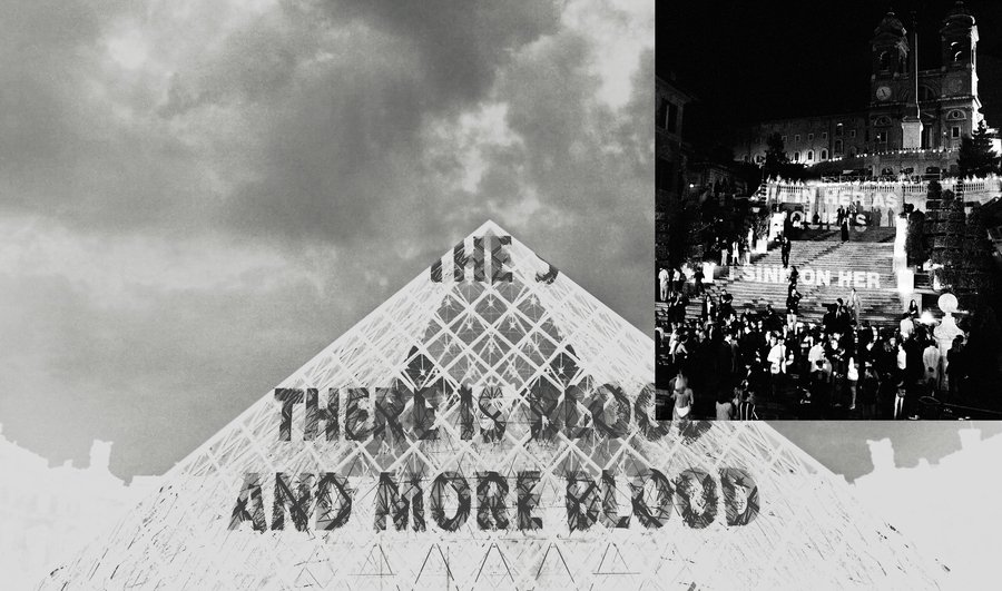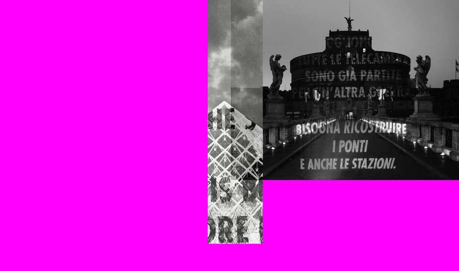 Проекции отражают реальность через современные вопросы человека, но современность искажается, она динамична во времени, и световой текст — единственная возможность удержать внимание зрителя.