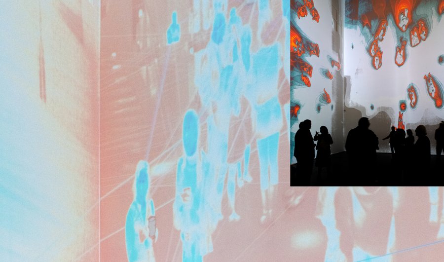 Инсталляция проецирует тепловые следы посетителей в реальном времени, создавая абстрактные, меняющиеся узоры. Зрители становятся частью «живого» цифрового полотна, на котором отображаются следы их собственного присутствия. Человек получает возможность преодолеть свою телесную оболочку и управлять эфемерной, неосязаемой энергией в цифровом пространстве.