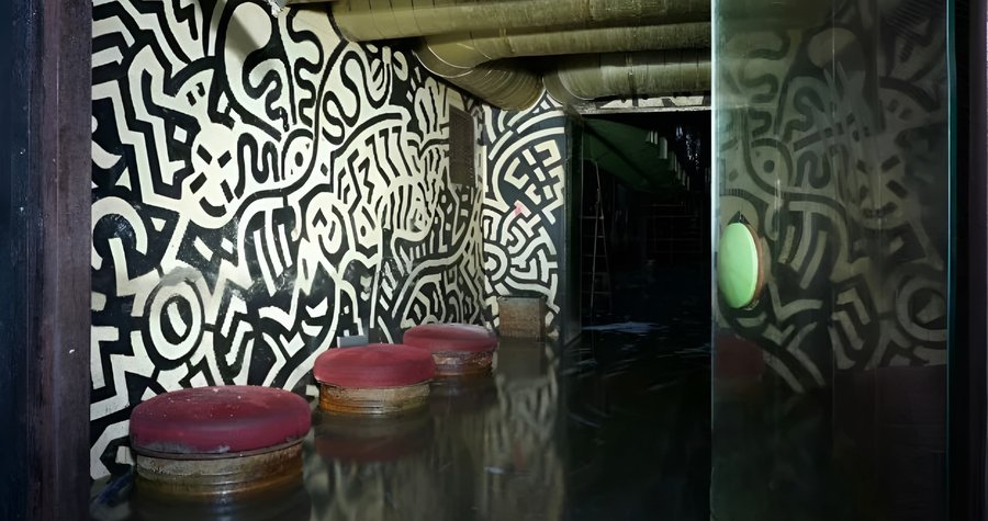 Логотип клуба «Тоннель» / Фотографии из клуба «Тоннель» /Флаеры клуба «Тоннель» / На последней фотографии Катя Голицына, Ирена Куксенайте, Марина Алби Мод и охрана «Тоннеля», 1993 год