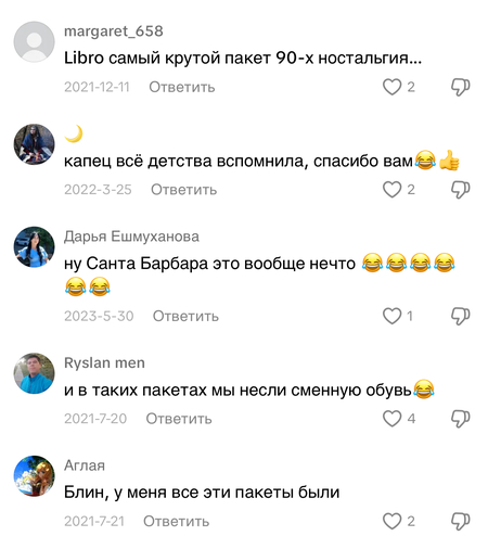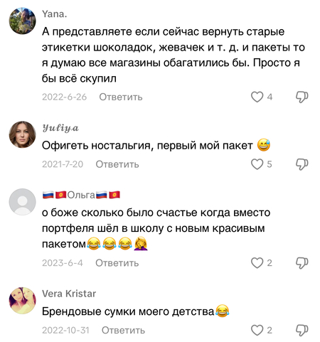 В последние годы образ старых советских и постсоветских пакетов с культовыми логотипами и абсурдными принтами неожиданно получил второе дыхание. В интернет-культуре их начали переосмыслять как символы ностальгии и иронии, превращая в объекты массового внимания и даже поклонения. Молодежь, которая не застала 80-е и 90-е годы, восприняла эти символы как способ выразить свою связь с прошлым, одновременно дистанцируясь от него через юмор.
