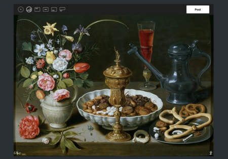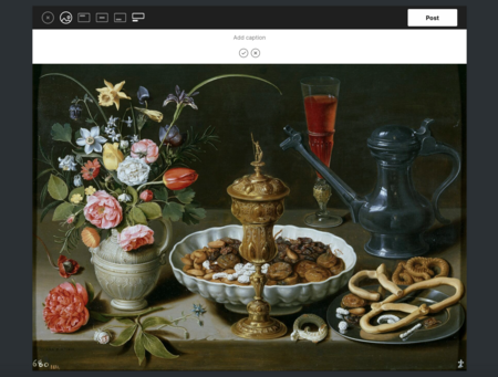 Нажав «Добавить блок», можно: — Разместить текст (не более 1200 знаков). — Добавить иллюстрации JPG (размером не более 3720×5262 px или 5262×3720 px). — Добавить анимированные изображения в формате gif (не более 20 мегабайт). — Разместить видео с платформы Youtube и VK, и аудио с платформ SoundCloud, Bandcamp или Mubert, используя соответствующие иконки в левом нижнем углу. Чтобы сохранить текст, изображение или видео, нажмите кнопку «Сохранить» в нижней панели блока.
